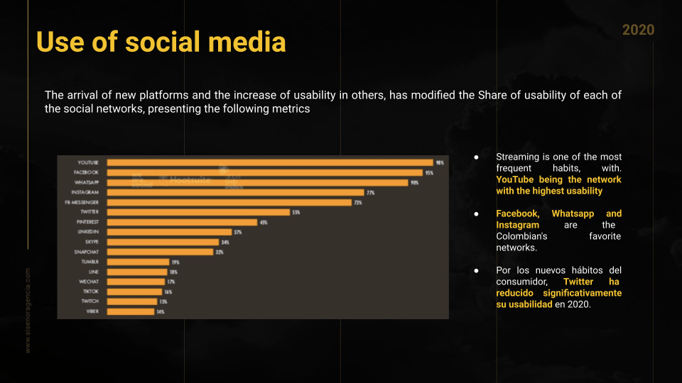 • Facebook, Whatsapp and Instagram are the Colombian’s favorite networks.