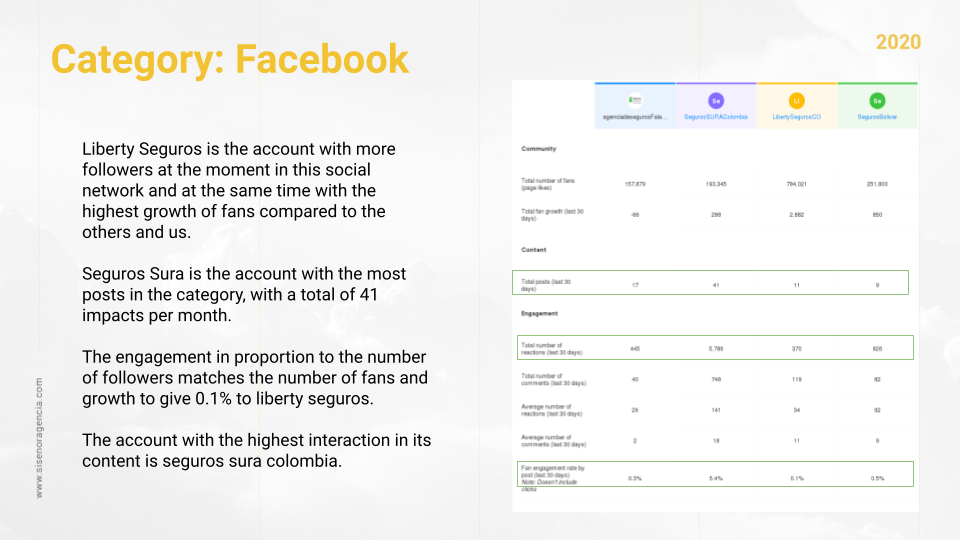 The interaction of the posts and the highest number of impacts per month in this social network is with liberty seguros colombia.
