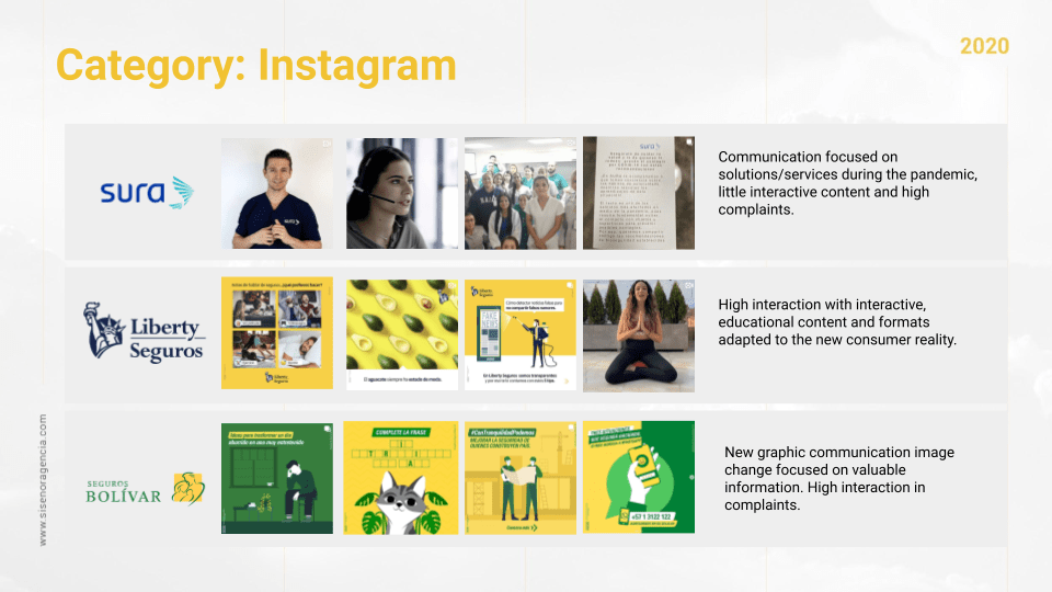 Seguros Sura is the account with the most posts in the category, with a total of 41 impacts per month.