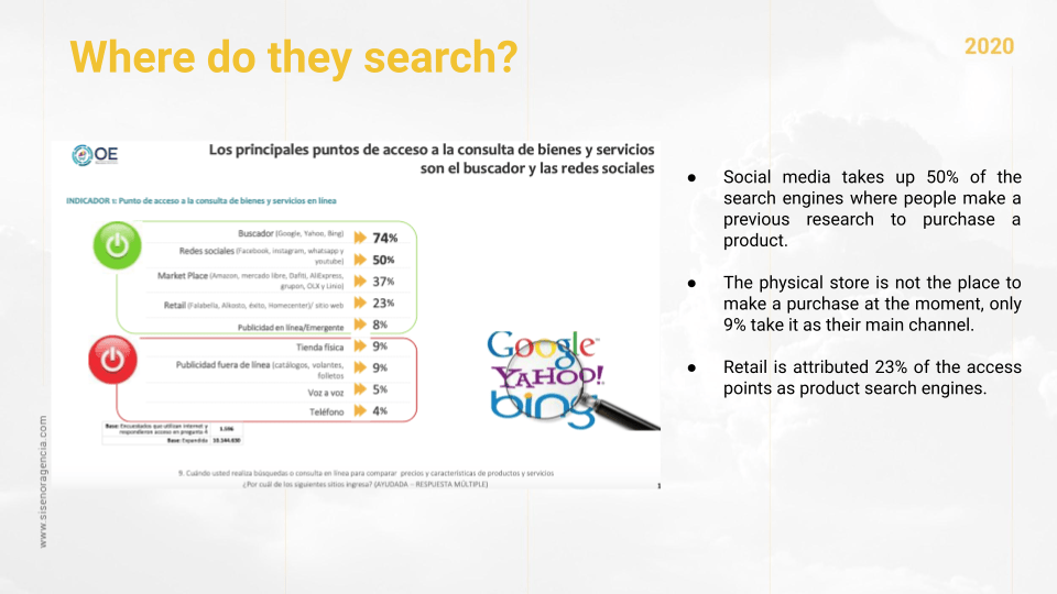 • Social media takes up 50% of the search engines where people make a previous research to purchase a product.