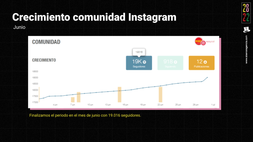 • We noticed that our growth has been notorious, we went from 14.235 followers in March to 19,016 in June.